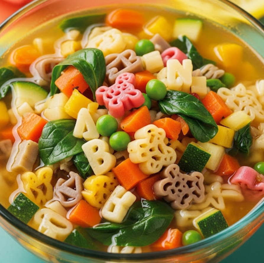 Diese Nudelsuppe ist nicht nur super lecker, sondern auch ein echtes Abenteuer auf dem Teller! Mit ihren bunten Nudeln in Buchstaben- oder Tierform und dem vielen Gemüse wird jede Suppe zum spielerischen Entdecken. So macht gesundes Essen Spaß!