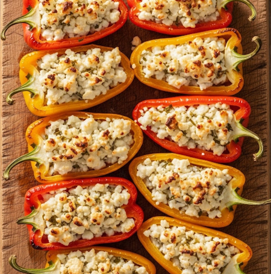 7. Servieren: Die gefüllten Spitzpaprika heiß servieren. Sie passen hervorragend als Beilage zu Gegrilltem, als leichtes Hauptgericht mit einem frischen Salat oder einfach mit etwas knusprigem Brot zum Dippen.