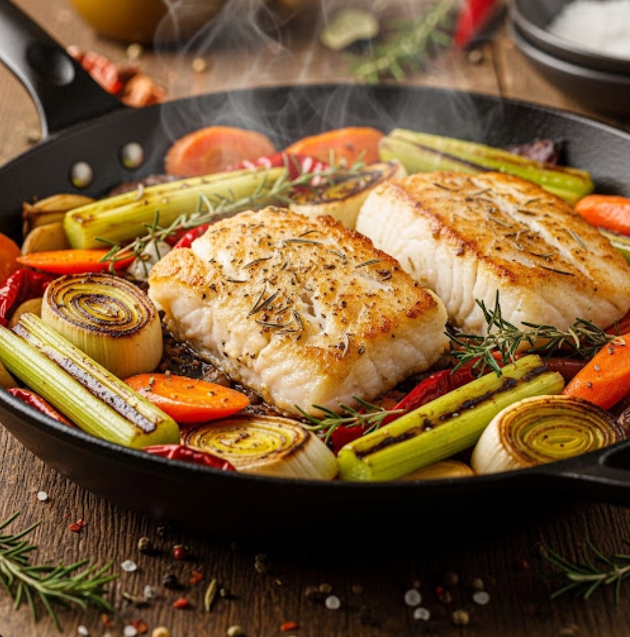 Große Fischpfanne mit Gemüse: Herzhaft, gesund und einfach lecker!