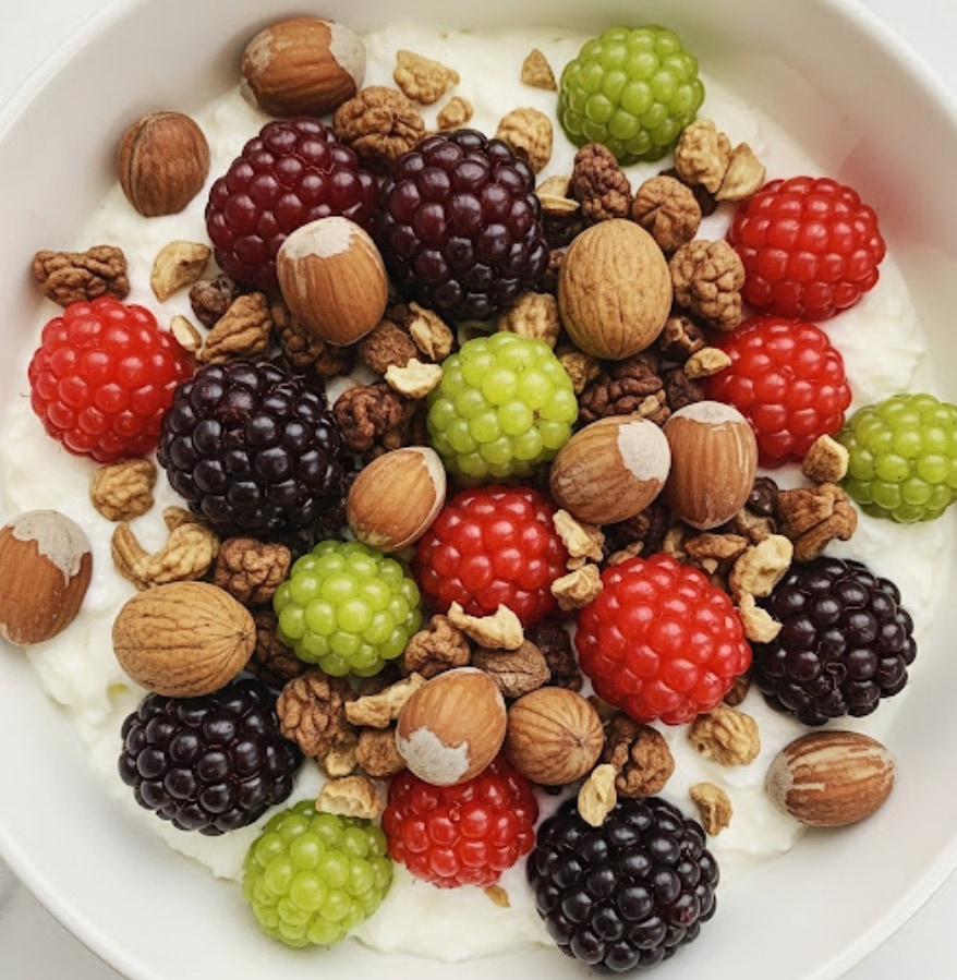 Quark mit Beeren, Nüssen und Haferflocken: Dein Power-Frühstück für einen starken Start!