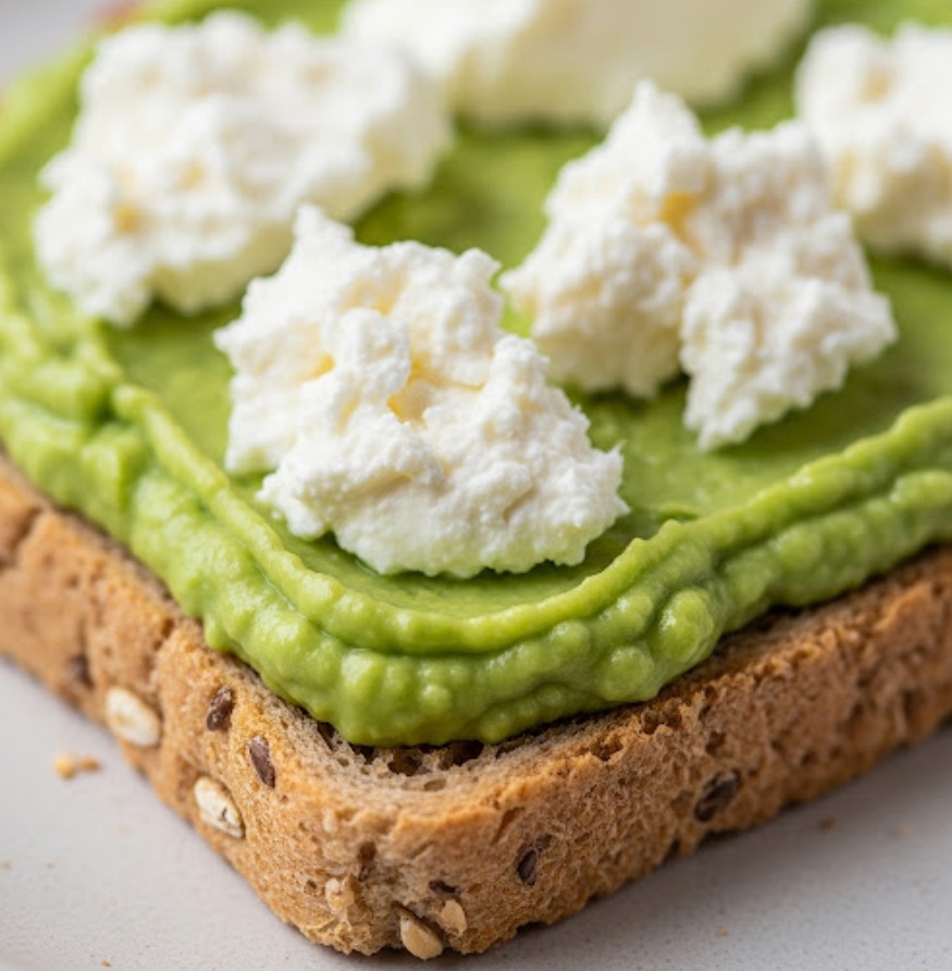 Proteinkick: Füge 1-2 EL Hüttenkäse zur Creme hinzu oder bestreue den Toast mit ein paar gerösteten Kürbiskernen.