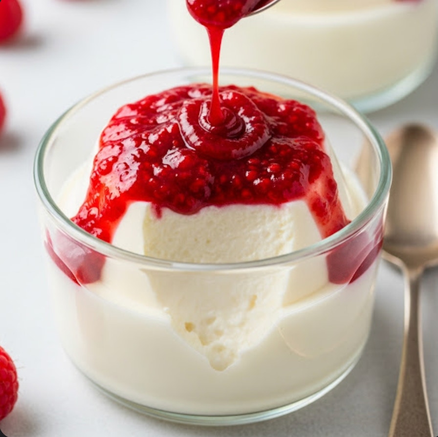 Zuckerfreies Joghurt-Panna-Cotta mit Himbeersoße